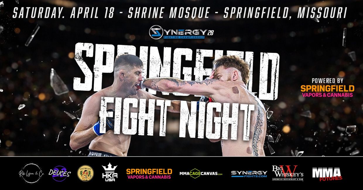 Synergy Fighting Championship invades the historic Shrine Mosque in Springfield, Missouri on Saturday, April 18th. The night of Professional & Amateur MMA action is Powered by Springfield Vapors & Cannabis.